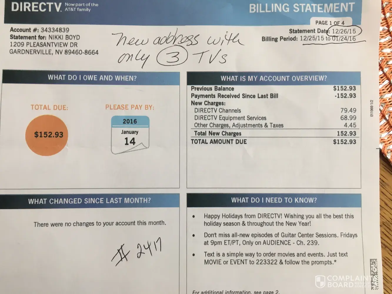 My problem, my issue is with directv!