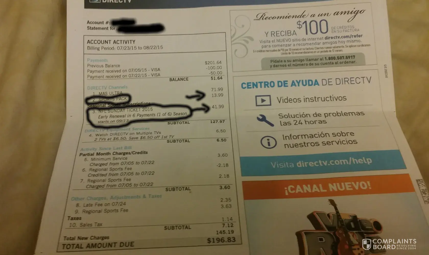 I had an issue when ordering the mayweather vs pacquiao fight and called directv customer service. They ended up offering me the fight for free. I get my bill and they charged me the 89$ for the fight. I called and they said there were no notes related to my call when ordering so therefore my word even though they called me a loyal customer since 2008 is not worth anything to them. How am I suppose to make this fair? Just because I am a nobody with no money and they are billionaire company they could care less what happens. Its complete fraud and they always get away with it. I have signed up with them on more than one occasion to find out that the package deal they quoted me is not the final bill amount once they add all there fees onto the monthly bill. So I signed up in 2014 for 86$ a month and now months later they are calling and wanting my past due amount of over 300$ because I was just paying approximately what I had agreed. My wife was there and witnessed the conversation.