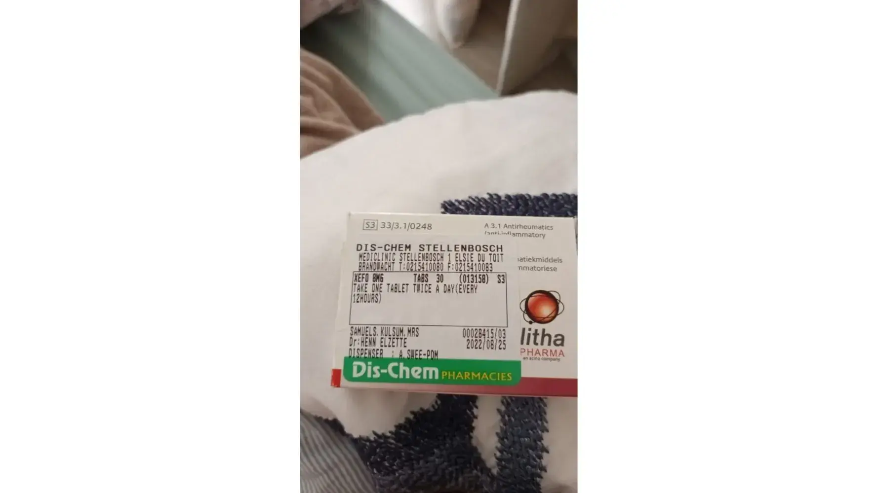 If I could not do this then she would have to go back to Dischem sort out problem then come bac, but I cannot have my medication.