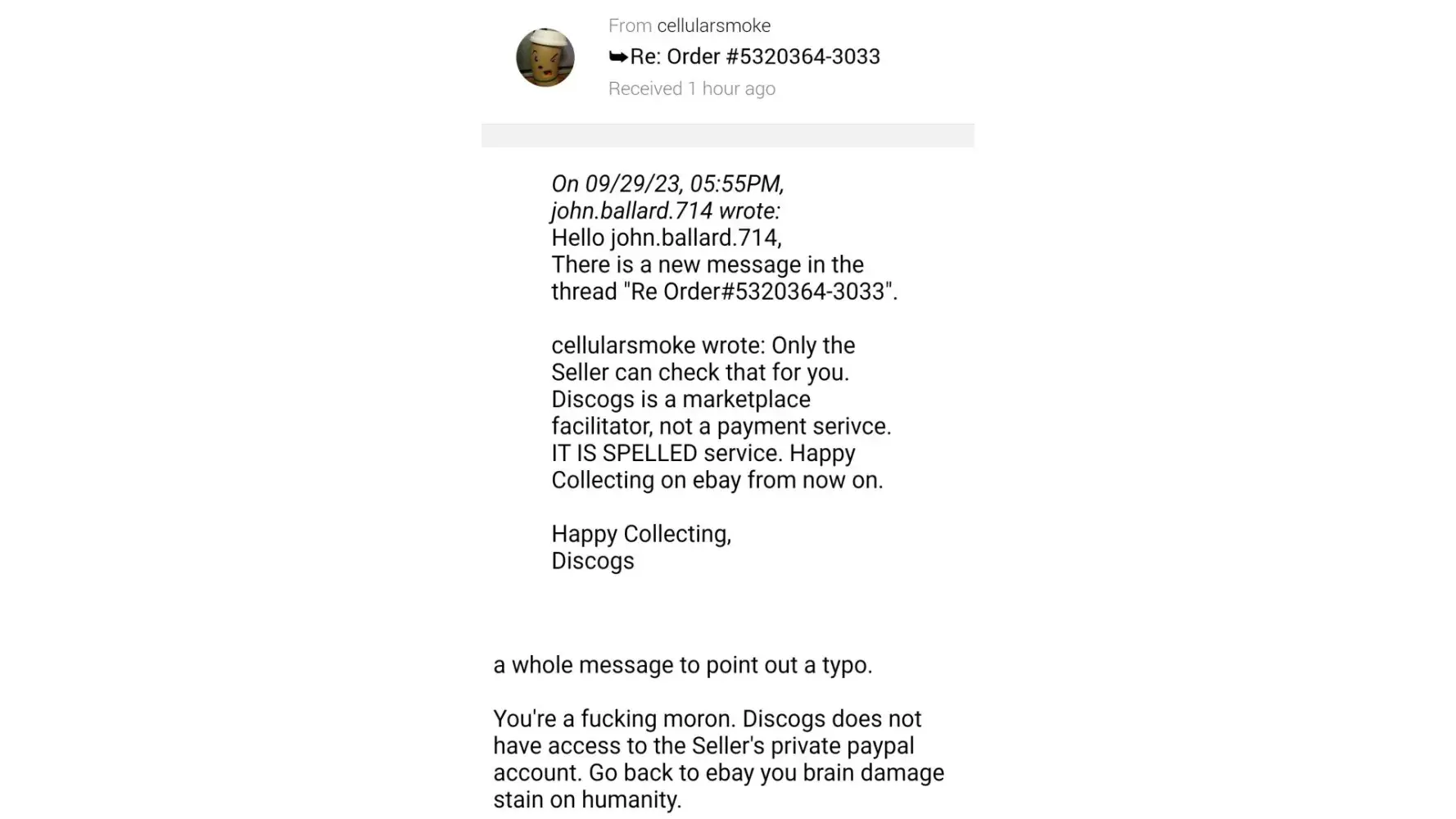 As this was the first time I had used a credit card for payment, I did not realize that PayPal would have covered return shipping costs. Unfortunately, this meant that I was responsible for returning the faulty record to the seller. I immediately informed Discogs of the situation, however, to my dismay, I found that they fully sided with the seller, leaving me feeling helpless.