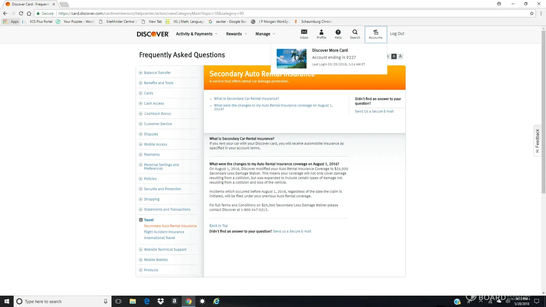 All the associates said that a letter was sent in the mail about the change. I don't remember seeing it. If this benefit is no longer offered why is the website saying that I do have secondary rental coverage? I rely on the website for current information and I made the decision to use discover card at the time assuming that I have coverage - Let me know if anything can be done to cover the expenses.