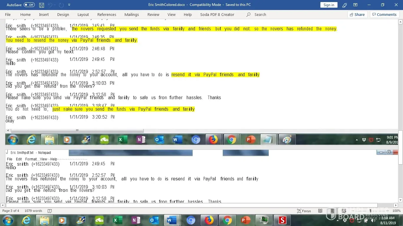 Please find, in the uploaded attached, text messages from Eric Smith instructing me, over and over, to send the amount of $1500 to PayPal via “Friends and Family”, as requested by the merchant, Titus Princess. PayPal’s main contention, as accepted by Discover, for denying refund, is that I sent the money via Friends and Family.