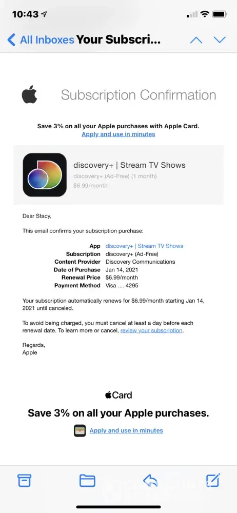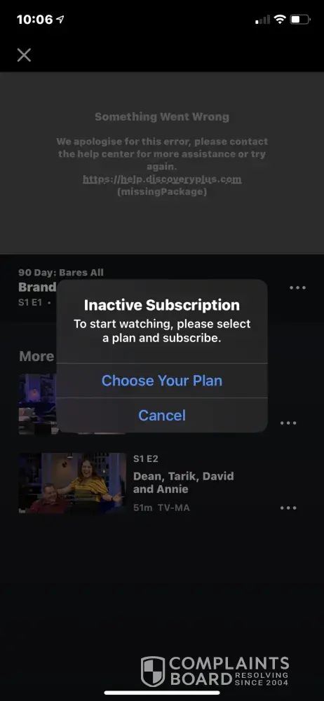 I had a free 7 day trial for the Discovery plus streaming. When that ran out, I bought the monthly subscription through Apple. They charged my card 6 days ago and I keep getting an error message when I try to watch. I contacted support and they had me uninstall my app and then reinstall. Did not work. Now they haven't returned any emails in 3 days! I'm very upset with this streaming service!