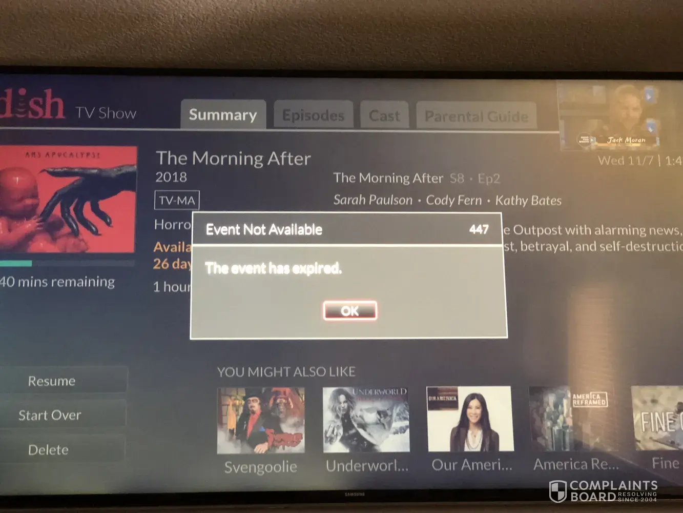 Every on demand show that I download won't play and shows the 447 message...event expired...This is ridiculous! It's been like this for over a year ...very poor business practices.