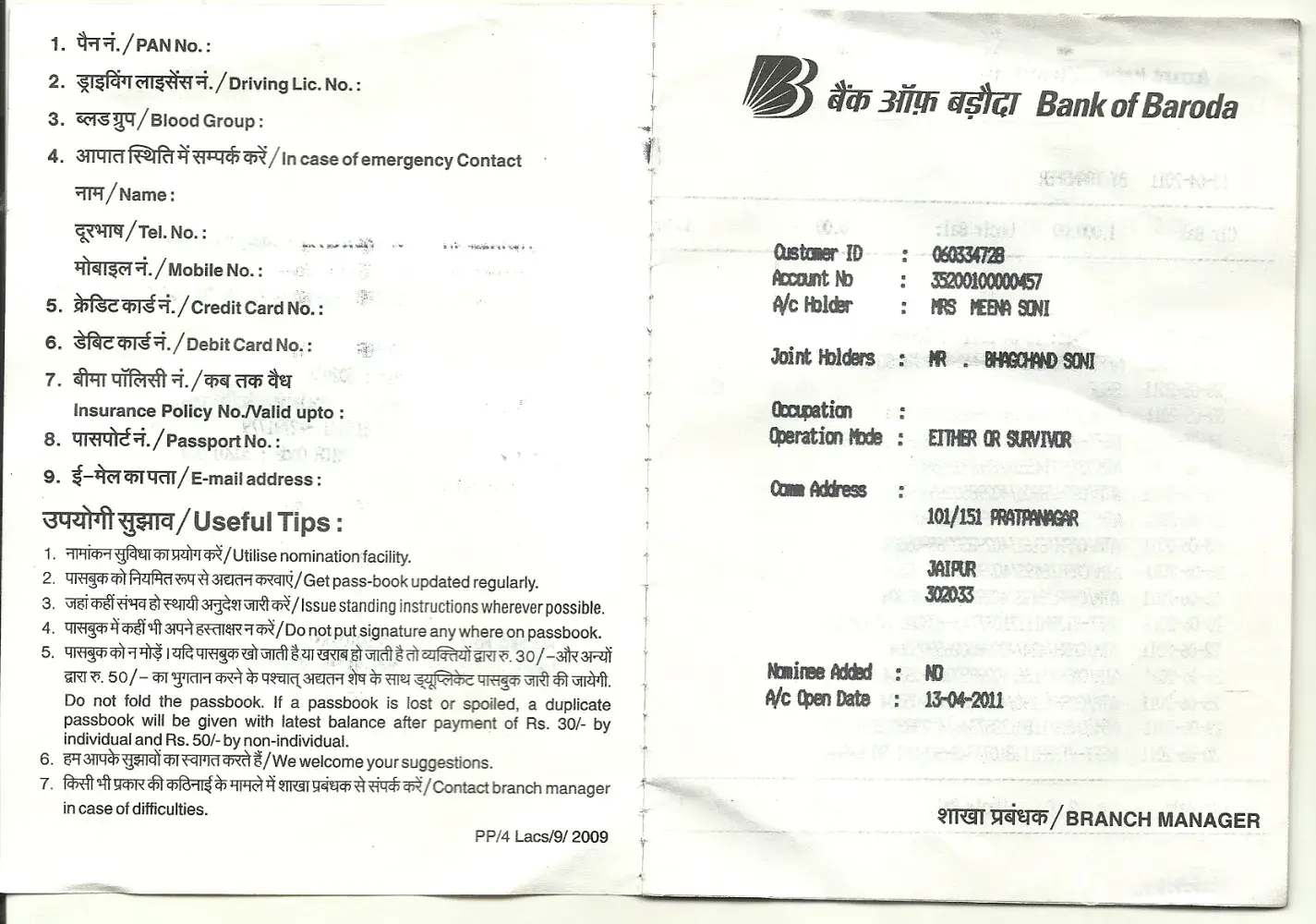 Scanned copy of bank passbook enclosed