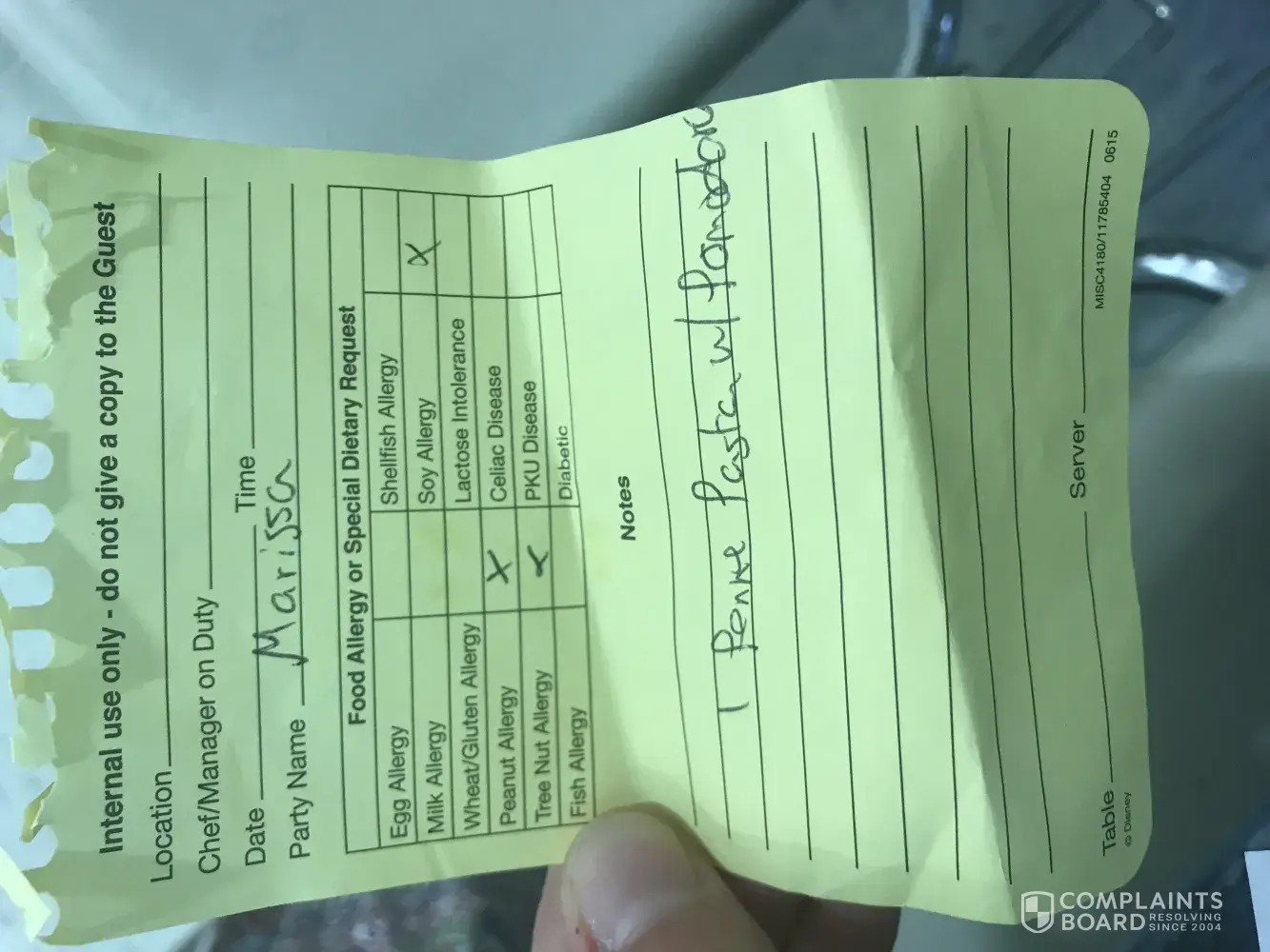 On September 9 I went to Boardwalk pizza and pasta in Disneyland Resort and asked if there was any pasta dish I could have because I have an allergy to soy and nuts. They had brought the head chef, Jesus over and he assured me it had no soy in it. I had a reaction and was sick most of the day. I went back to the restaurant on 9/14/18 and was informed what I had that day had soy in it by another head chef.