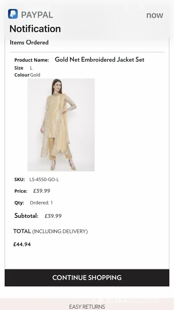 I was told that I will get my item in 1-3 days time but I still have not received it when I had ordered it and it said payment has been successful and then later on the next day when I clicked on it it said we couldn't accept your payment due to some problems and when I clicked on my orders it said that it has been ordered so I'm in a dilemma wether it has been ordered or not and if it has accepted the payment I ordered the kurta's on my email address: [protected]@hotmail.co.uk can you plz found out for me cause I need them before 3rd August thank you