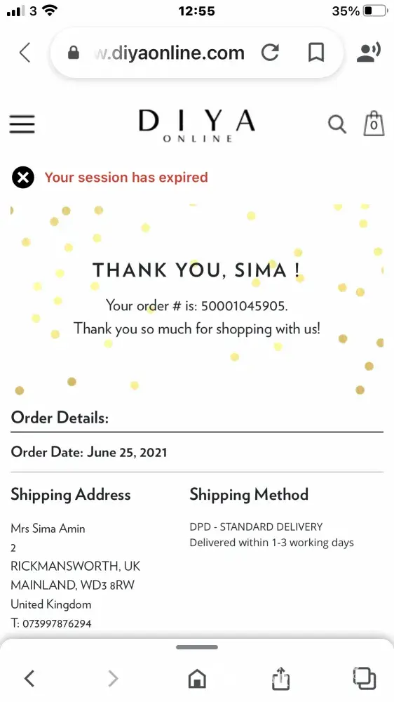 After this i made numerous attempts to inform Diya of my situation, they do not answer their phones and do not acknowledge my change of address issue via email.