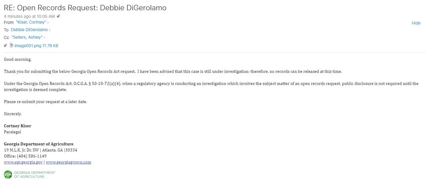 Ms. DiGerolamo and Mr. Rivera have reported DKV Rottweilers to the state of Georgia, the department of Agriculture, and the humane society, to name a few. DKV Rottweilers home and dogs were inspected numerous times by different agencies. After passing each inspection, DKV Rottweilers was informed that a report was called in by Ms. Debbie (DiGerolamo) claiming to be a neighbor of DKV Rottweilers and reported there were many dogs in poor condition. Our code enforcement officer believed Ms. DiGerolamo's dog had died 48 hours after she received him and DKV Rottweilers refused to help. These are the caliber of lies that were provided by Ms. DiGerolamo. This week, Ms. DiGerolamo also put claims on her online payment transactions, made several months ago, stating she had never authorized those payments. Again, more lies and the claims were eventually denied.