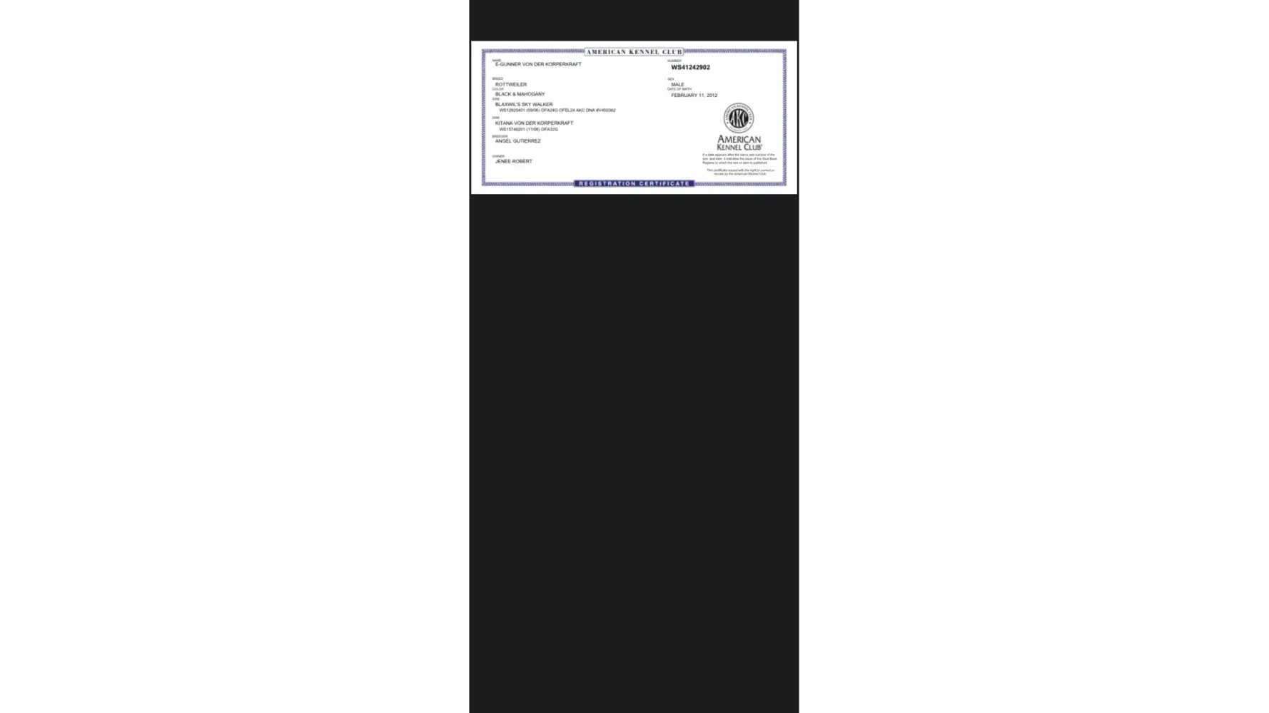 The DKV Rottweiler business was a pleasure to deal with. It was a big decision buying 2 rotties and we wanted the (2) perfect fits for our family.