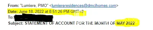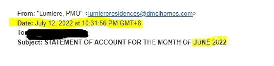 We paid the principal charges from the assoc dues and taxes in 2021 and DMCI Sorrel continued to bill us the penalties. The paid amount was never reflected in the billing and PMO always blamed DMCI BOD for delayed decision. What's to decide?! We paid, reflect our payments and remove penalties incurred after the payments!