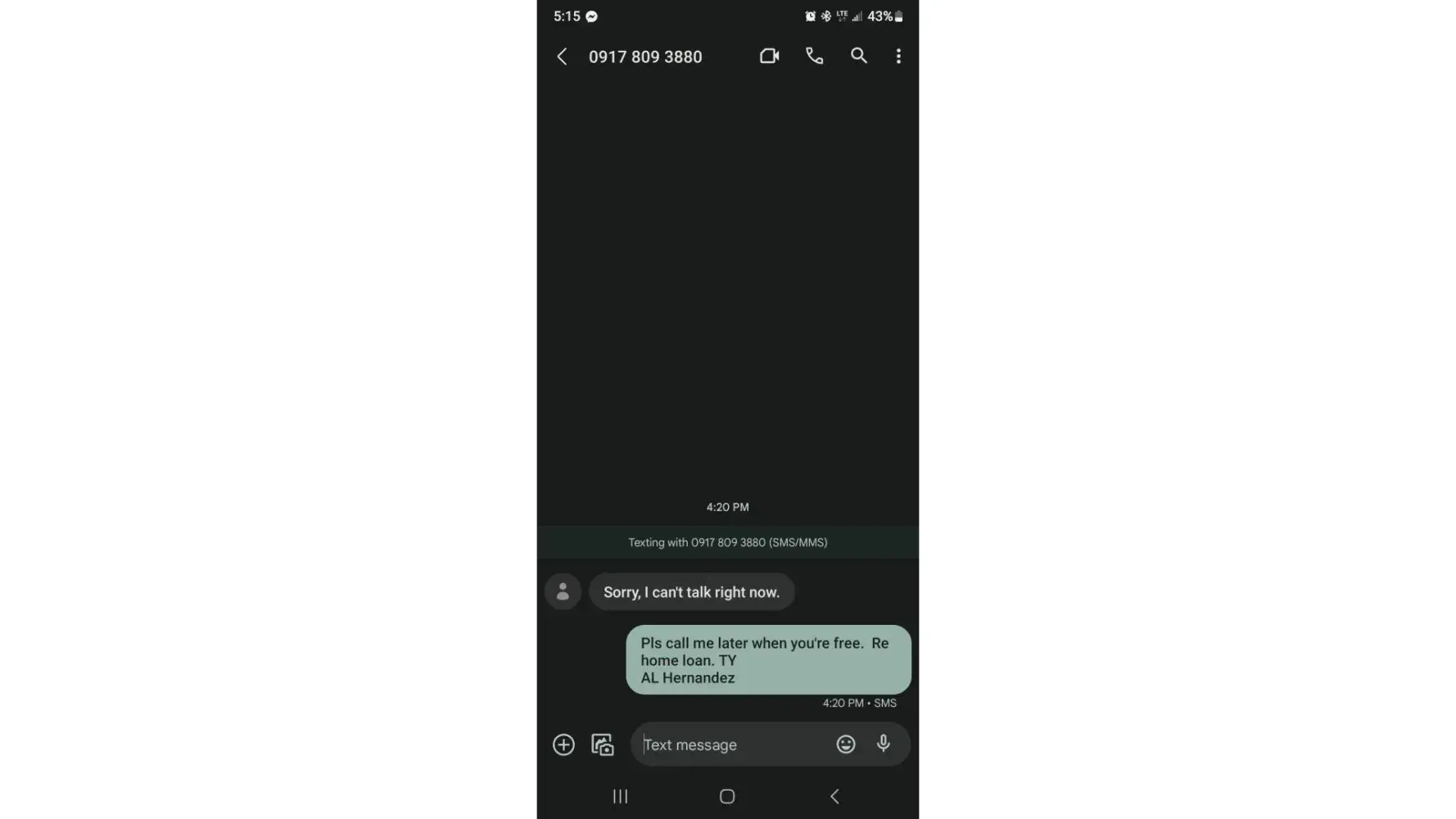 I got an email offering help in financing of my condo unit, so i tried calling the mobile [protected] of a certain Jenica Rollon for financing help, but my calls were repeatedly rejected & got an SMS saying "Sorry, I can't talk right now".