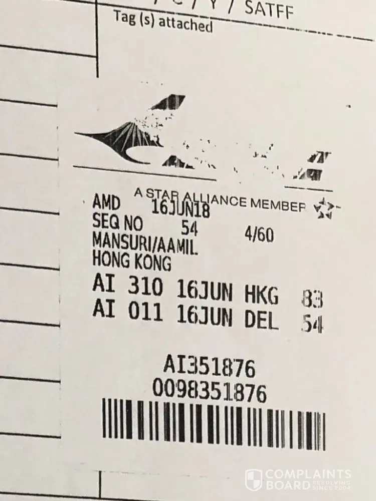 I m travelling from ahmedabad to hong kong having stoppage at delhi international air port by air india with my family when we arrived to hong kong air port we didn't get our one luggage bag. This is horrible for me and my family having small girl without clothes and medicine for her please give good service or close that bogus air line. And ya one more thing if I didn't get it within 24 hours than I purshude in court. Thanks dr