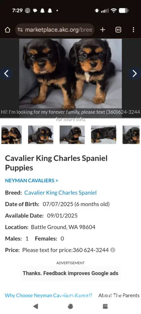 Neyman Cavaliers Battle Ground Washington - Defective puppy without prior disclosure
