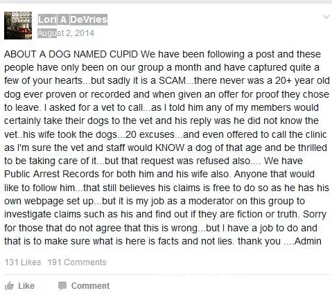Lori A DeVries is a puppy mill breeder that has falsely attacked others on Facebook, she is a well known heavy drug user, which her husband Anton Devries now past away posted this in the group Pomeranian Lovers Of America, Which now the name of the group has changed to MILK's Pomeranian World, Lori A DeVries had to step down as a admin her own group due...