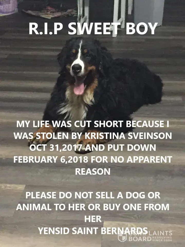 Read full complaintYensid Saint Bernard Kristina Sveinson Dog Killer Alberta - kristina sveinson dog killer yensid saint bernards