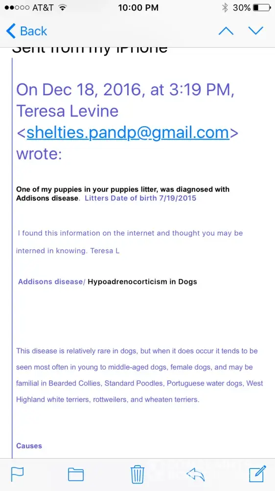 My husband and I raised hope in our home. She was 8 weeks when she came to live with us. She will be turning 2 soon 7/17. We offered to buy her for $1, 500.00 in 11/16 we were told no as teresa levine wanted to make money she wanted at least 3 litters from hope. We told her we wanted to wait to breed her until she was 2 years of age. Yet, teresa continued...