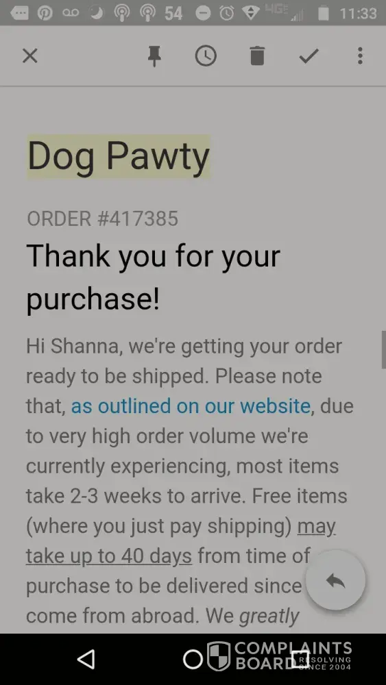 Dog Pawty never received order