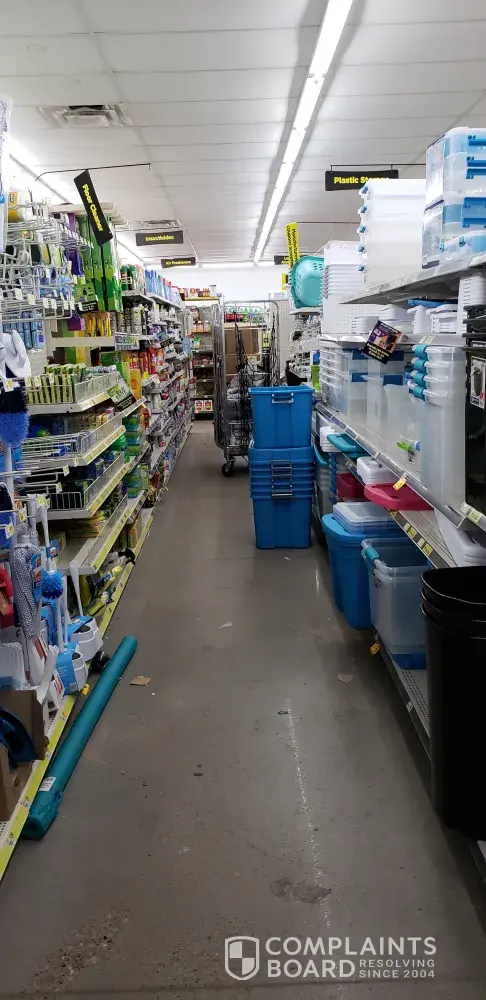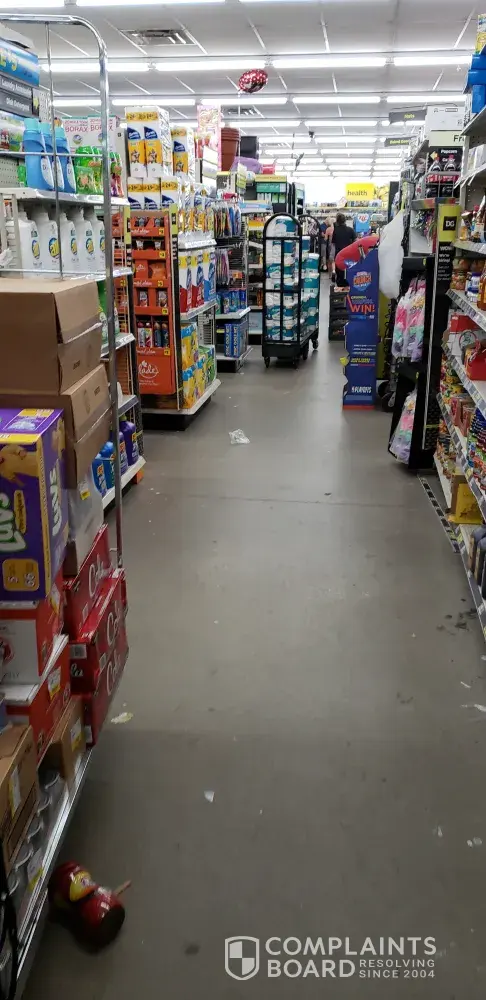 The store is filthy. The shelving is dirty, the floor has not been mopped and there are puddles of water throughout the store. Your shoes stick to the floor where you walk. There are ants on the floor as well. The employees leave the front doors open and smoke right where customers enter the store. The aisles are cluttered with boxes and very dirty. I enjoy shopping at Dollar Generals, but I will no longer go to this store.