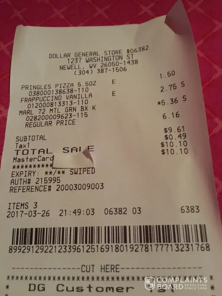 Went to the Dollar General on [protected] Auth# 589875