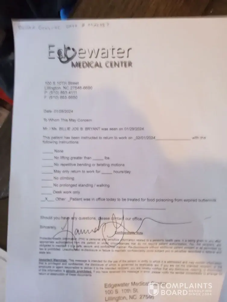My wife and I went to dollar general on january 27th 2024 my wife picked up a bottle of ranch dressing to dip her chicken in we just got from the chicken place well we went home and we were eating well she kept saying it didnt taste right well we figured it was because we didnt eat nothing of day but if it wasnt the chicken because a both me and her son would of got sick well I went to put everything away and I noticed the expiration date was for june 2023 I called store and they told me bring it back so we did the next day january 28th 2024 well I was talking to employee went and looked at the other salad dressings well long and behold they were all expired I emailed cooparte office I got a call from some guy I believe it was january 31st 2024 well he tells me we are responsible adults we should be looking at dates no thats what your employees are supose to do but the say short staff is a problem thats all they said at store everytime we go in there the employees are on there phones or talking away to there friends this store is a mess inside and out there lights on sign are out my wife went to doctors on monday and had food poision well between paying the and pharmacy she lost 3 days of work