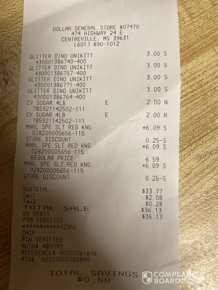 Go to $ general - new cashier (very nice) chatting during checkout. Manager (crystal) comes up watching and showing her what to do - but she had done all right so far. I ask for 2 packs marlboro special select short in gold box (this is how I always ask) the cashier turns around but "manager" is on it and drops them in my bag while cashier checks my license I see they're on sale so I say give me packs - I pay and grab bags to walk out and realized she had put red cigs in bag. I pulled them out and said I asked for gold. Manager then tells me we have to refund and redo. Okay. Then tells me I owe them money - red ss vs gold ss but ok then I look at what she's ringing up and it's $6.09 a pack. I said hold on. These are all supposed to be $5.26 a pack. You're already charging me $6.09 and now telling me I owe more. Can't do anything-I ask for another manager (just the point of it all). She states can't do anything about it. I said then take the sign down that says &5.26. I'm told they can't the cig people put that up and they can't change prices. So the original manager (crystal) says she asked for the red box. I'm like hold up. I know what I smoke I did not ask for red - you had gold in your hand when I was talking to you and you made a mistake and grabbed red! Cashier agreed with me and was very apologetic but neither manager was. They were both very rude and charged me.75 over clearly advertised price then charged me an additional.54 bc they said the gold was more than the red! I paid and left furious only bc there was a line but that is false advertising and the managers not upholding it and being so rude was just the final straw! I'll go to an entirely different town before either of them wait on me again and if the sign isn't taken down there's going to be more issues - they did not give me a copy of the other receipt where they swapped the cigs and charged me more.