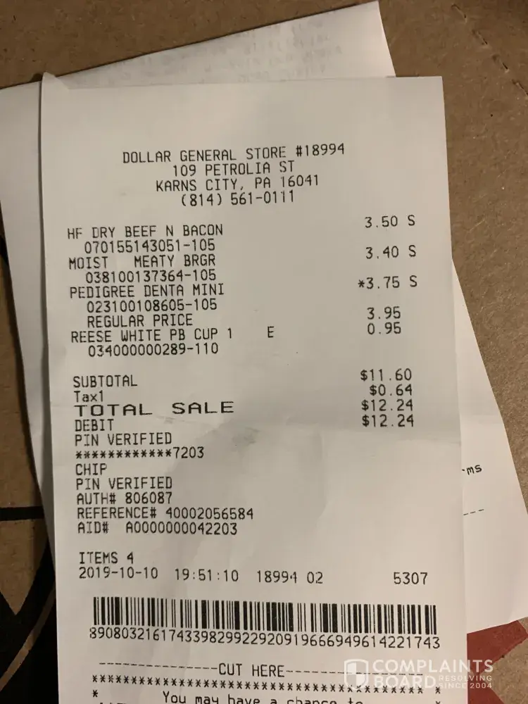 Read full complaintquality of store