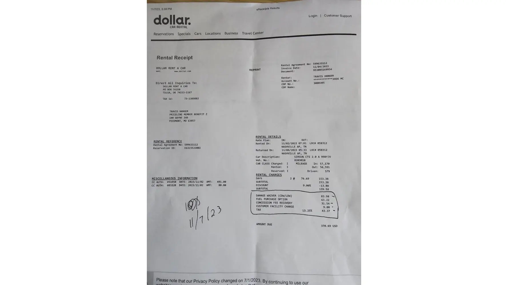 Hi I just received a copy of my invoice for a car rental with Dollar picked up from San Francisco Airport on Saturday 23/09/2023.