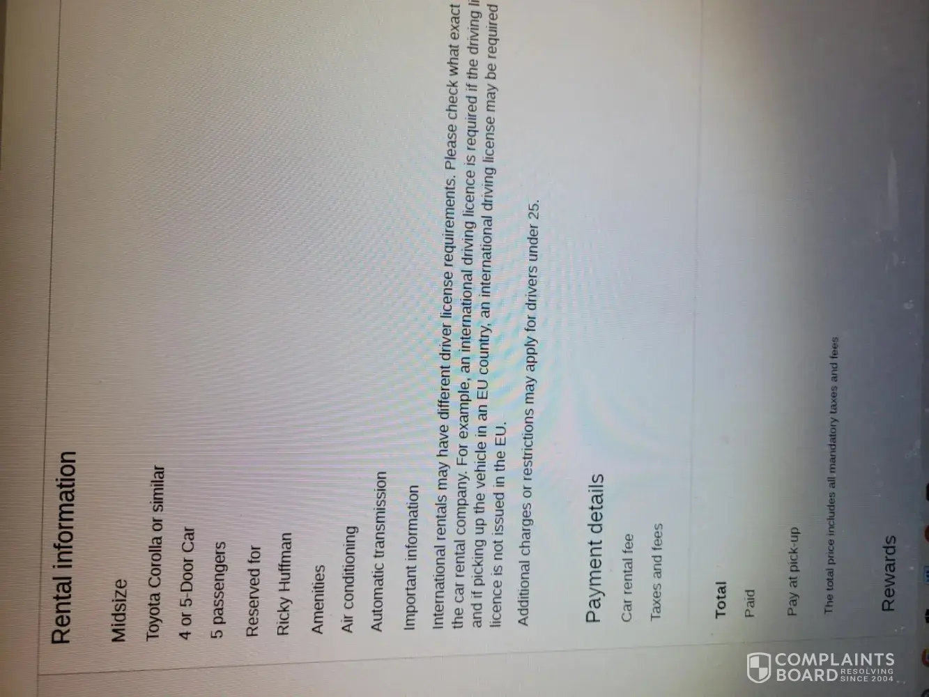 Read full complaintRental car