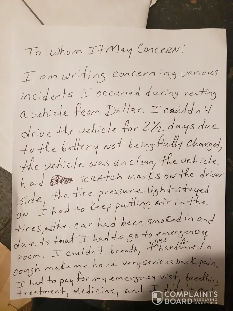 But when my Dollar. rental engine light went on a few days later and I exchanged at San Diego Location. . They saw a dent on car = that wasn't mine. And wrote me up an incident report. I am livid. I have no pre registration card for this card. And it is very advantageous for Dollar to refuse them. As now the customers are liable - when it was a pre existing condition on the car.