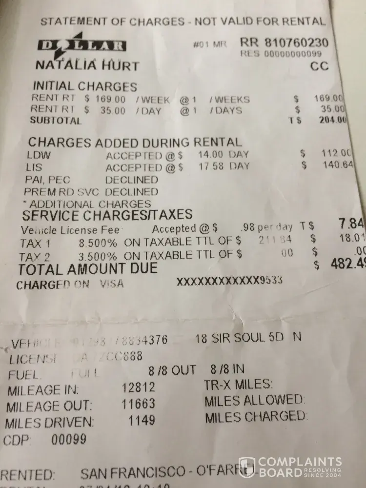 Because of this incident I can assure you I will never use your agency again and will inform Trip Advisor as well as other travel sites of this Dollar Rental Branches rude and scamming business practices!
