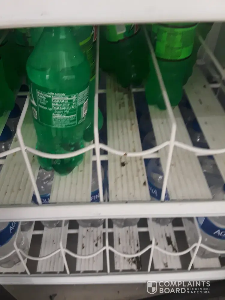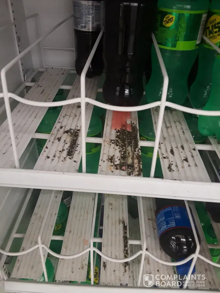 The Pepsi refrigerator is filthy with mold and mildew. When I brought it to the attention of the Store Manager Shawn or Sean (I'm not sure of the spelling of his name. He said "I have called Pepsi to bring another one; but just after that, the stocker began to refill it with new product ad food not clean it. He said "I just work here". I feel that we should not have to purchase a product where we are exposed to mold and mildew. I feel that these refrigerators should be disinfected immediately and mot overlooked.