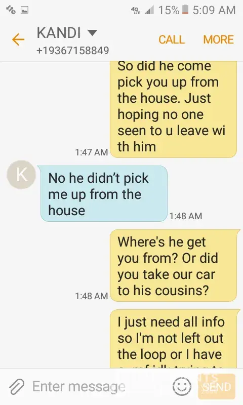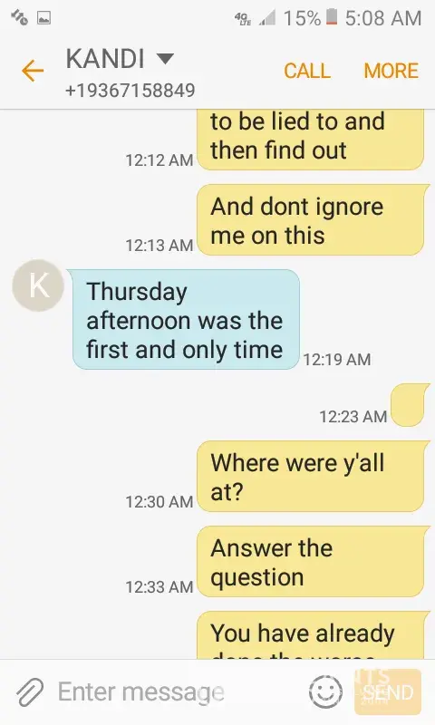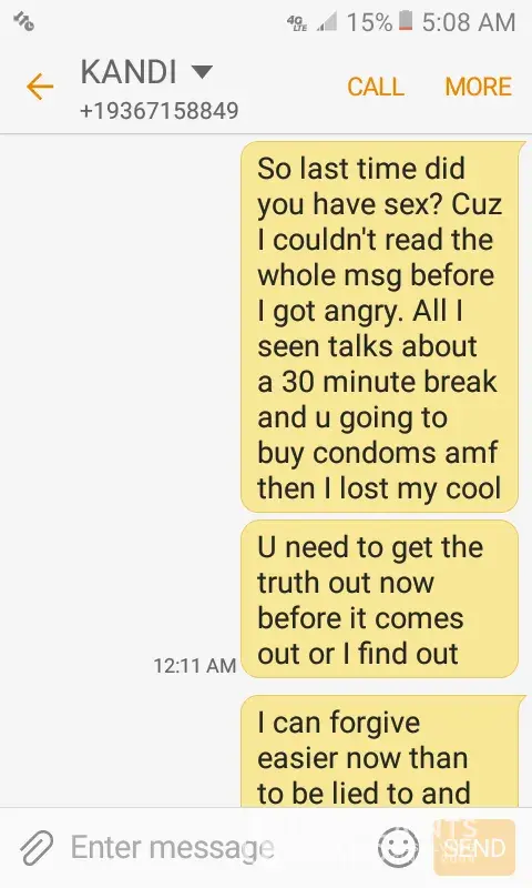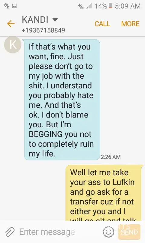 On December 19, 2017, I received several calls and text messages from the manager at the Dollar Tree located in Alton, Tx on Conway and 5 mile line telling me she was having an affair with my husband. She send me text messages stating where she was telling him " Remember I made you talk to me until you gave me your number" This was during her work hours. The reason she told me was because she got angry when he told her he wasn't going to spend Christmas with her. It's humiliating that I've been going to this store as well as all my family to find out this is where the manager uses it as a [censor] house to meet men. And now, she advised me not to go to HER STORE anymore. And on case you're wondering, no I do not forgive the trash that went along with this home wrecker.
