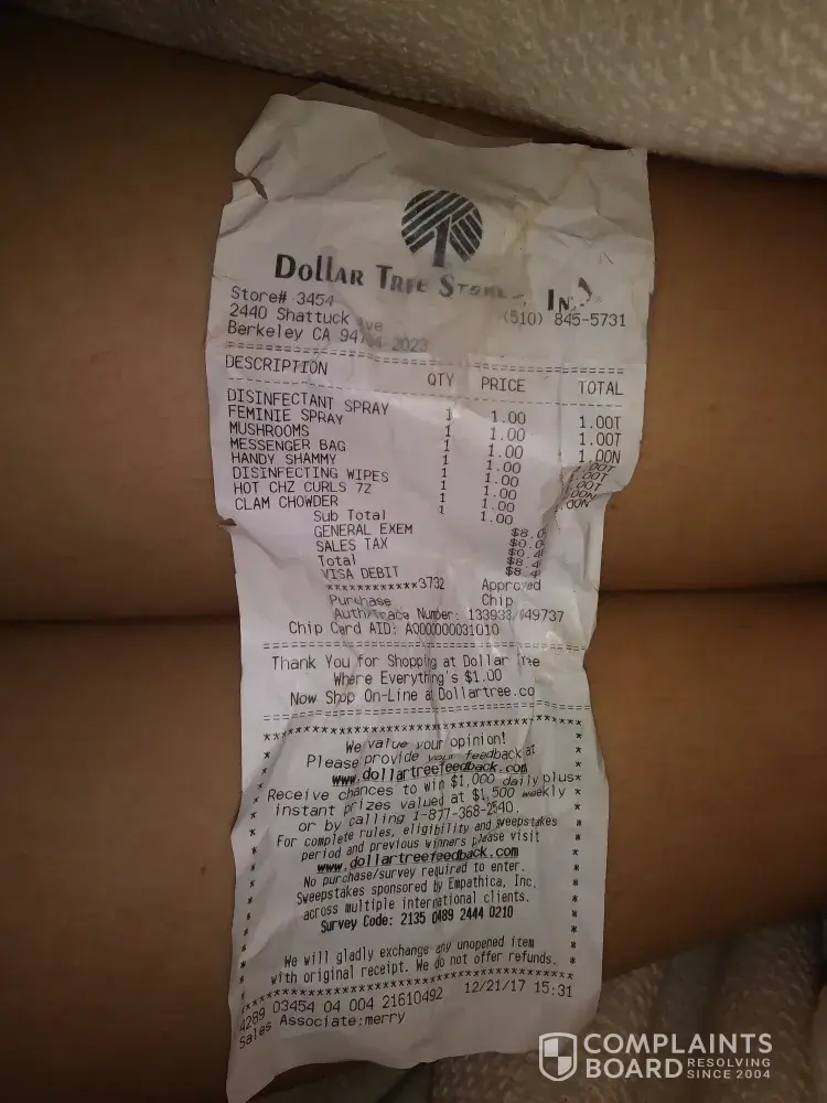 dollar tree store # 3454 (complaint)