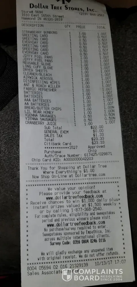 I was the dollar tree store @ 1610 e. 165th st. Hammond, IN. Store # 5694. Worst customer service ever. Manager left the store with over 20 people in line. 1 cashier did not open the other cashier left her register to complete a call in order of 20 balloons that the manager gave her when she left. The other cashier took people from the back of the line finally and was very rude when asked why. 1st was Lonnie, 2nd cashier was Markaya, manager left before I could get her name. This store is famous for leaving One cashier on duty. Corporate needs to look into this store procedures. I was there October 13, 2017 for over 30 minutes at the register. Who have left everything, but wanted a receipt to get numbers to call. Which that didn't work either. THIS COMPANY HAS BAD CUSTOMERS SERVICE ALL AROUND