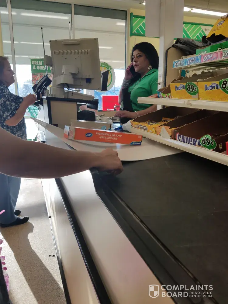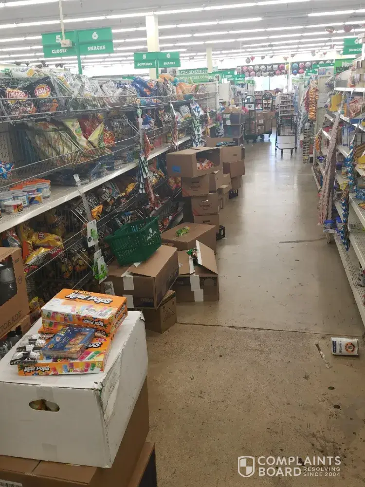 I have attached a few pictures to show what we witnessed at this store. I pray that someone takes the time to look into my complaint and rectify the situation at this location. I honestly believe if this continues, this Dollar Tree location will not last very long.