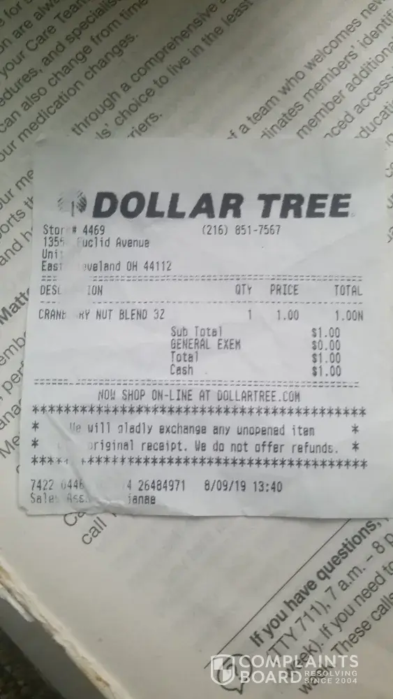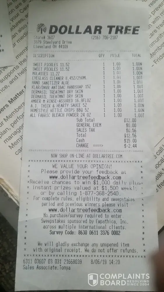 I did add picture of the receipt she gave me that day. Also I added a receipt from the regular Dollar Tree I usually go to which is what Receipt is suppose to look like.
