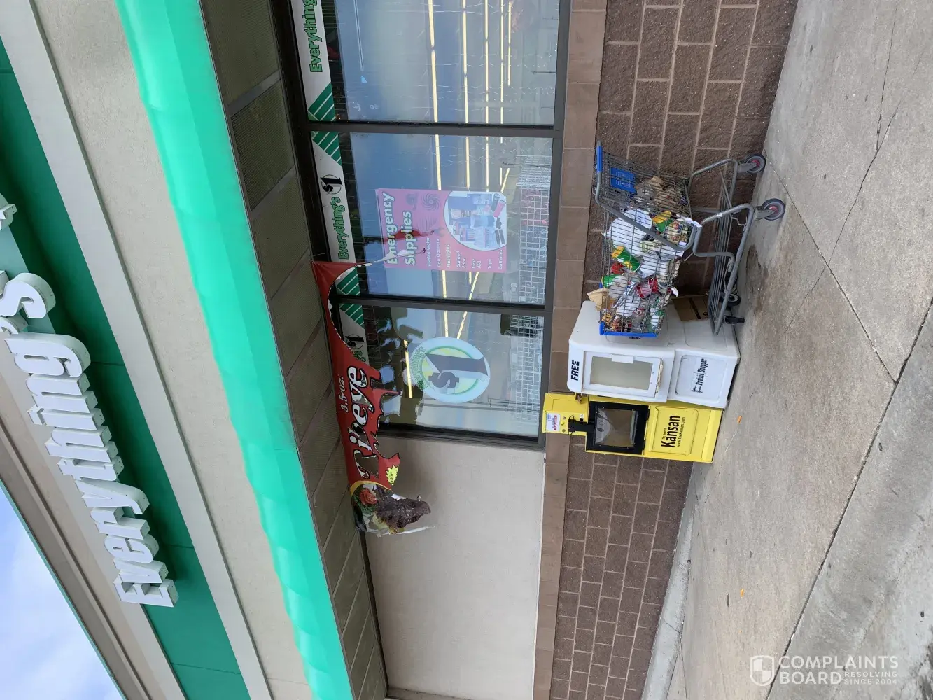I have included a picture of the your store front. This was yesterday and I assure you this is the norm. Using a Walmart cart for a trash can is a first. This store is always trashy and dis-sheveled. Does not help your store nor the other stores in the complex. Additionally, why do I need to use 350 characters to tell a story that can be told in less - does not make sense!