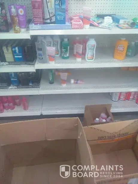 Some of the shelves are emptied and others are half empty.The floos are dirty and trash on the floor Their is no one to help you. Customer service is awful.whyndo I have to go outside of my neighborhood to shop. The freezer has no ice and a sign on the door saying we sell ice I checked for the past two weeks no ice.Up front were the cashier at the drink freezer are completely emptied.No part supplies no spoons or forks. No container or plastic bowls on the shelves.The floors need to be swept and mop