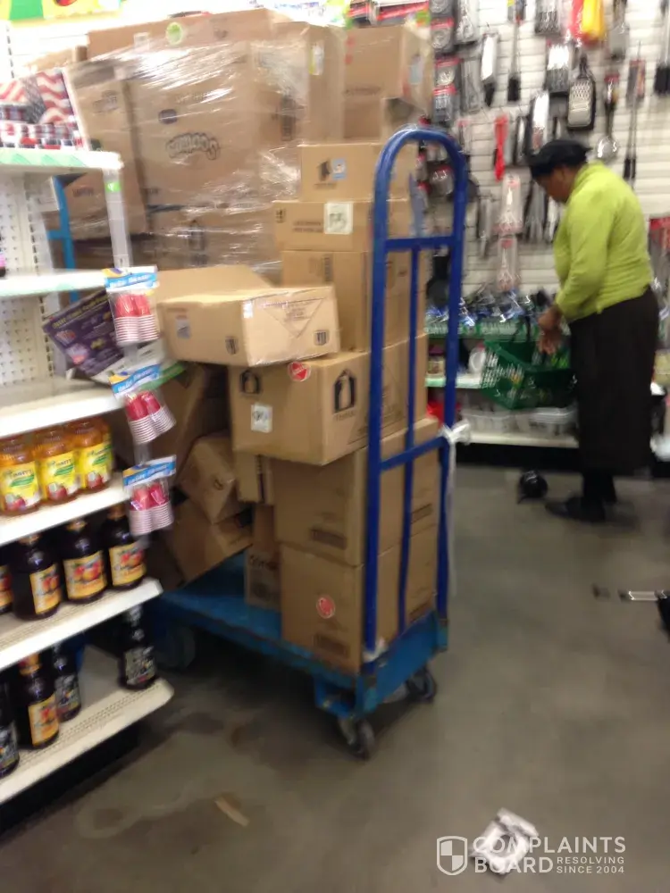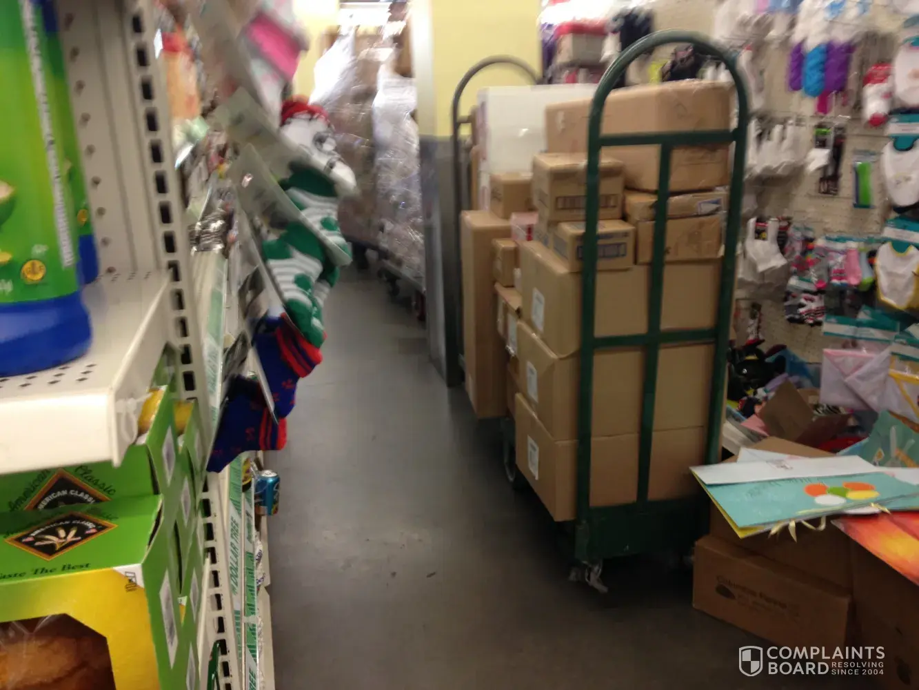 My name is Martha Riggio and I live in Brooklyn N Y . I frenquently visit two dollar stores in my area, store #4737 located on Avenue N and Store # 5611 on Coyle Street. Each time I go into these stores there are unpacked boxes in every isle. The bins that hold items are never in order and the boxes block the bins so that u can't fine the item you are looking for. I spoke to the district mgrs of these stores, Jason and Eric last year And was told that they would look into the problem but as of this date nothing has been done. This problem with your stores is ongoing for the last two years.