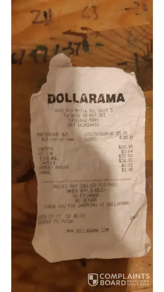 This is what happened to me Shopping At Dollorama At 747-Notre Dame Ave Sudbury On. I bought a visa pre-paid The Perfect Gift and went home to register only it would give me a message, tried and tried so called the number on the back of the card and the visa reps said to go back to Dollorama and tell them to scan the card and due some thing cause they didn't load the card. instead, they pretty much told me to f off and called the police.. I waited and waited for the police to show up So Called them and told them my name they said they aren't gonna go and I told them what was happening.. Dealing with client services sucks send this send that picture knot clear.. Got the BBB involved and done with that Garbage Racist Place and I've never ever stole anything from all the years been shopping there and I'm in my 50's.
