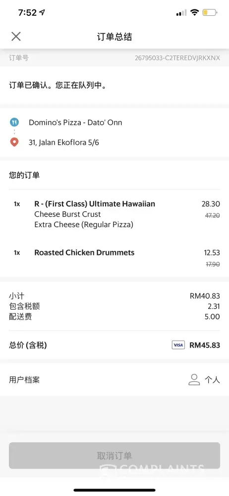 I make an order from grab food waiting 1 hour haven received my pizza, and I call customer service never pick up.. Bad service