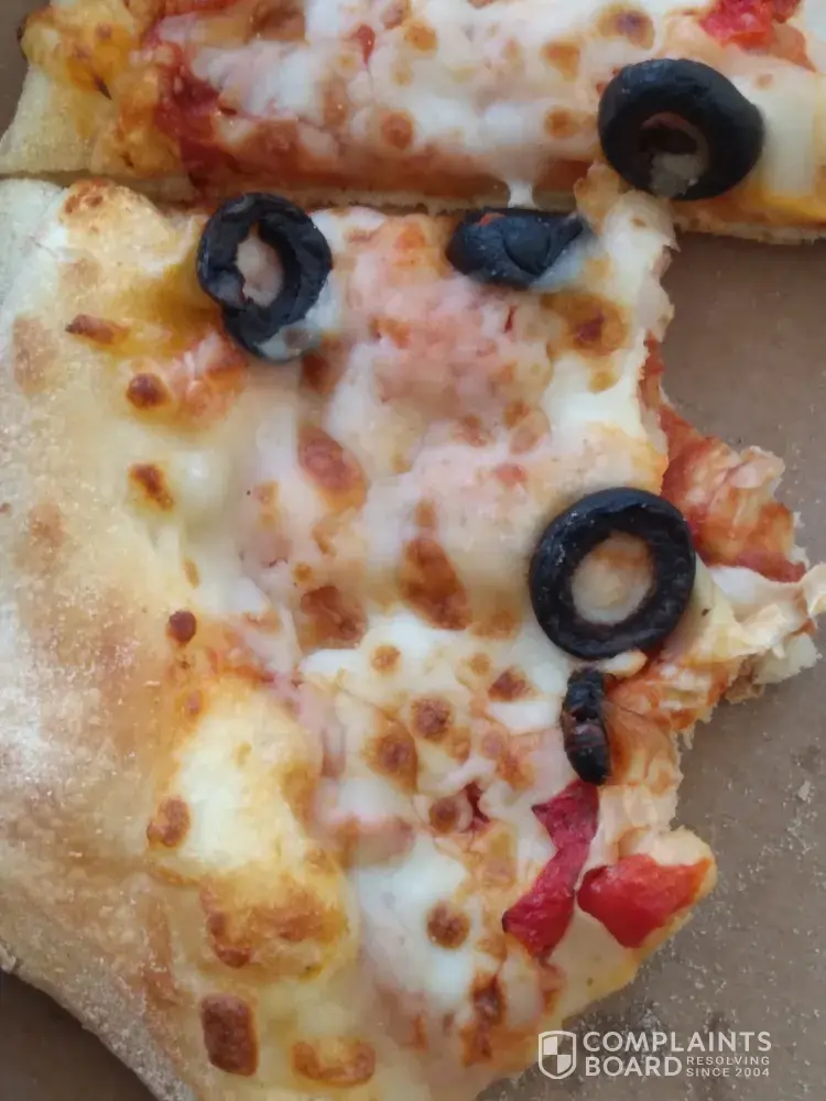 I returned home at 11:00pm with my pizza that was ordered at 9:30pm and that i had to pick up instead of it being delivered. I ordered it to be cut into squares, but they couldn't even do that. I ordered extra cheese and sauce. I did not see that.