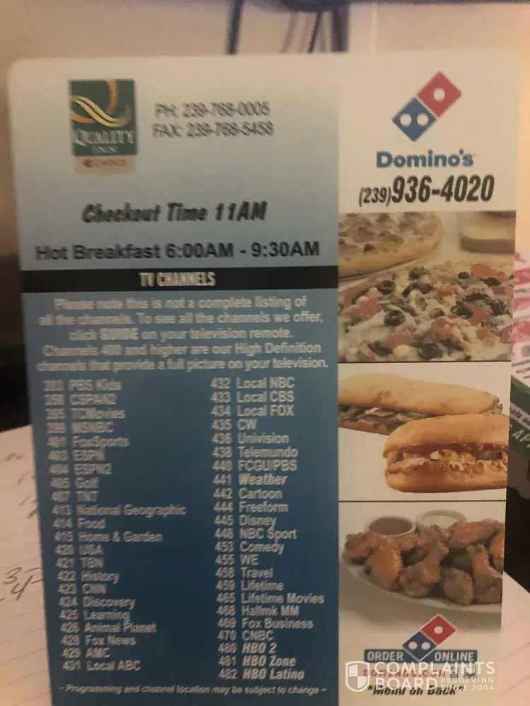 We are on a family emergency from New York. When we got to the hotel we were very tire and hungry. We didn't want to go out to eat. We order Dominos from the room advertisement. A young lady answer the phone and I was trying to understand the ordering procedure and she grew in patient and out me on hold. She left me on hold for about 7 minutes. A young...