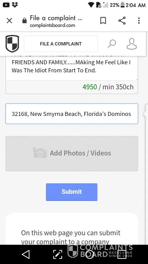 On 9/15/2) 20 I placed an order for a medium original crust pizza with white sauce philly meat and mushrooms it arrived with red sauce received a credit ordered that pizza it came with no mushrooms now waiting two days later on the third attempt of getting the order right dominos pizza 710 e 32 street yuma az 85365 [protected] manager was not very customer...