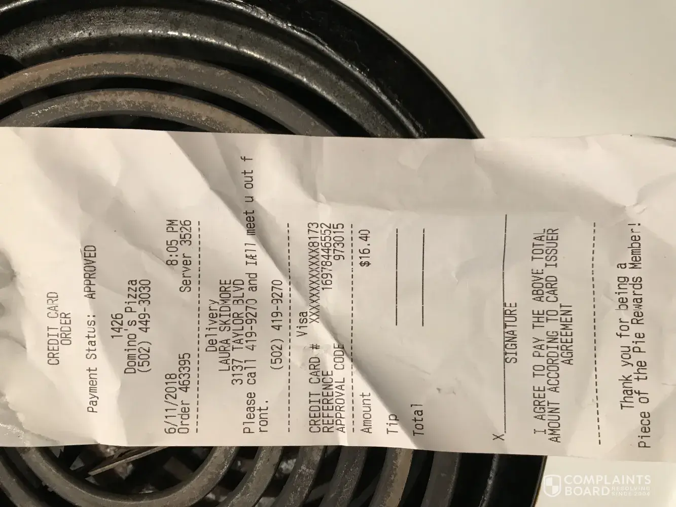 The picture below is the Dominos (drunk) driver that delivered to my house 6/9/2018
