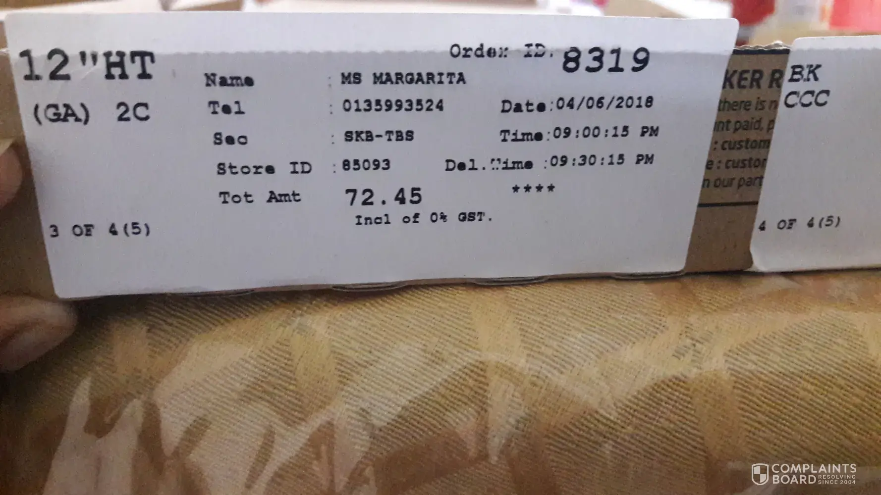 non delivery of ordered pizza.