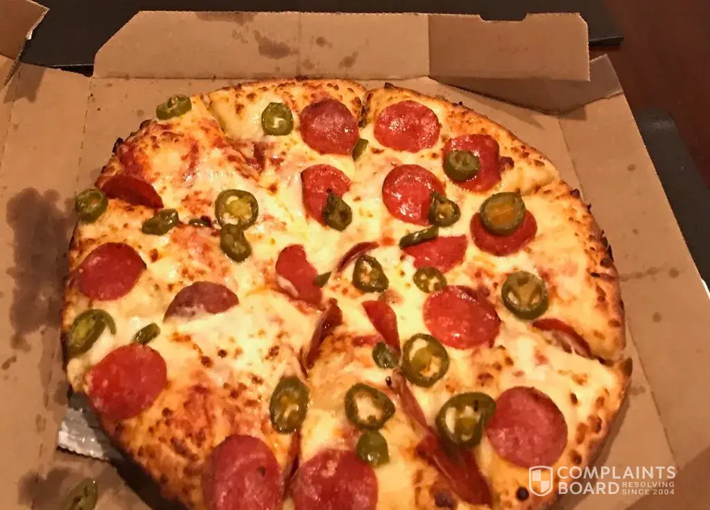 The pizza from the 31st was sparse with toppings (extravaganza) and overdone. I was even very ill the next morning and had to get someone to come over and help me with my dog. I ate very little other things during the day, so I am pretty sure that it had to do with the food from there.