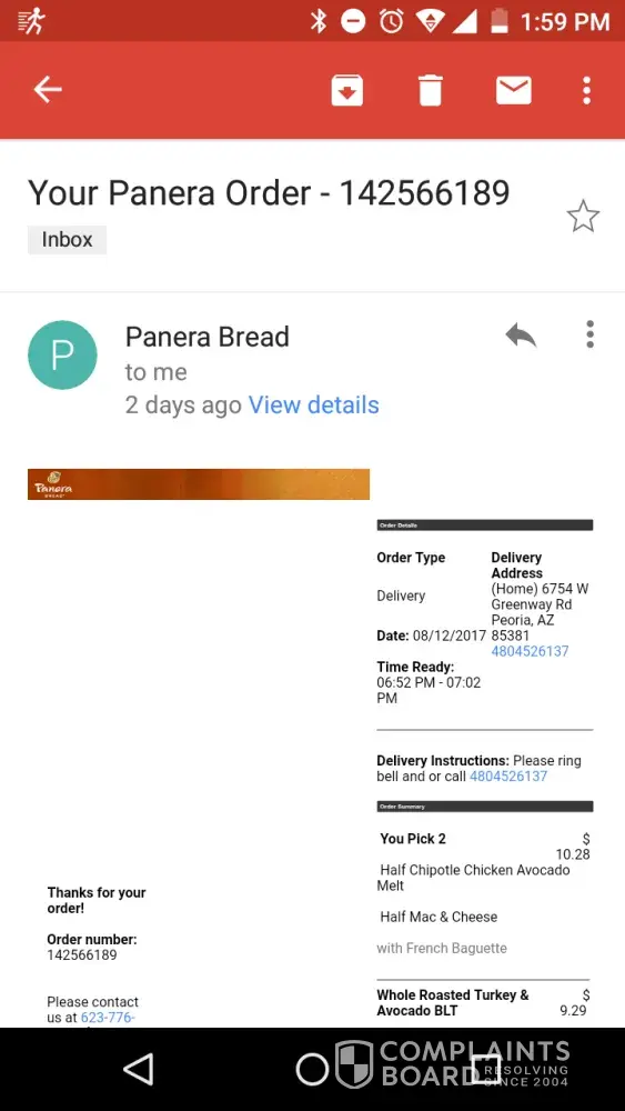 food complaint