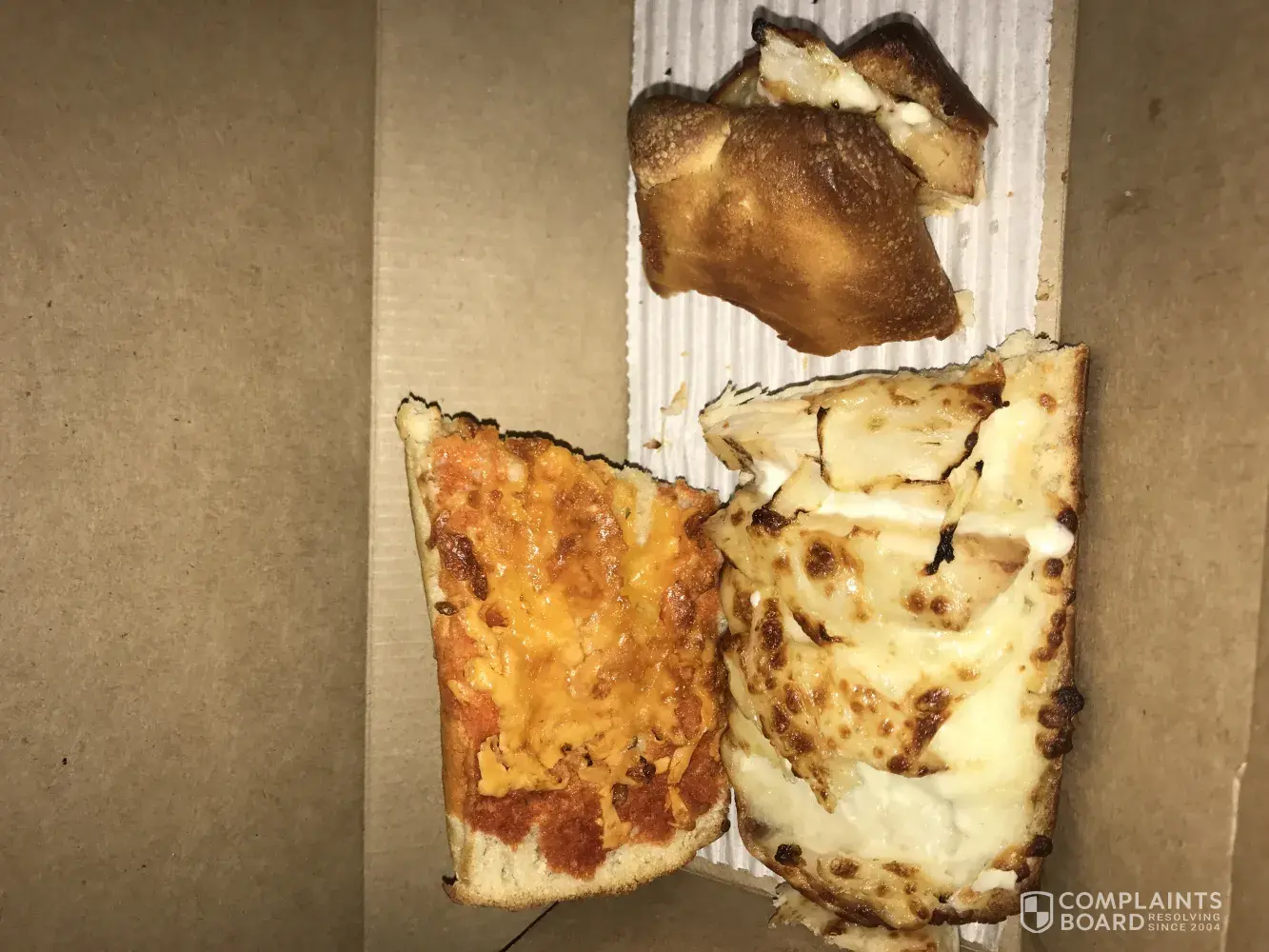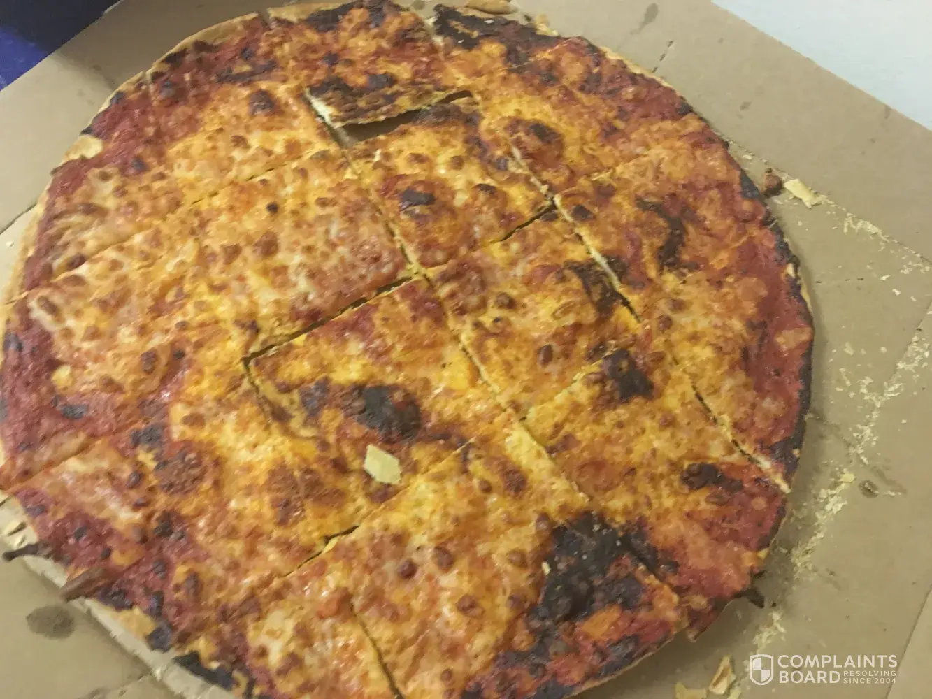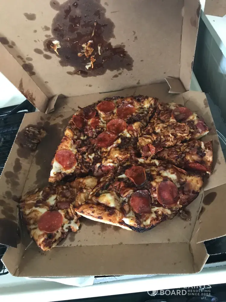 I ordered two 12" pizzas online and it was delivered on time. But, the pizzas were either a day or two old or they were cooked and overcooked. I have the picture attached for your reference. My friends and I are offended. The location is below: